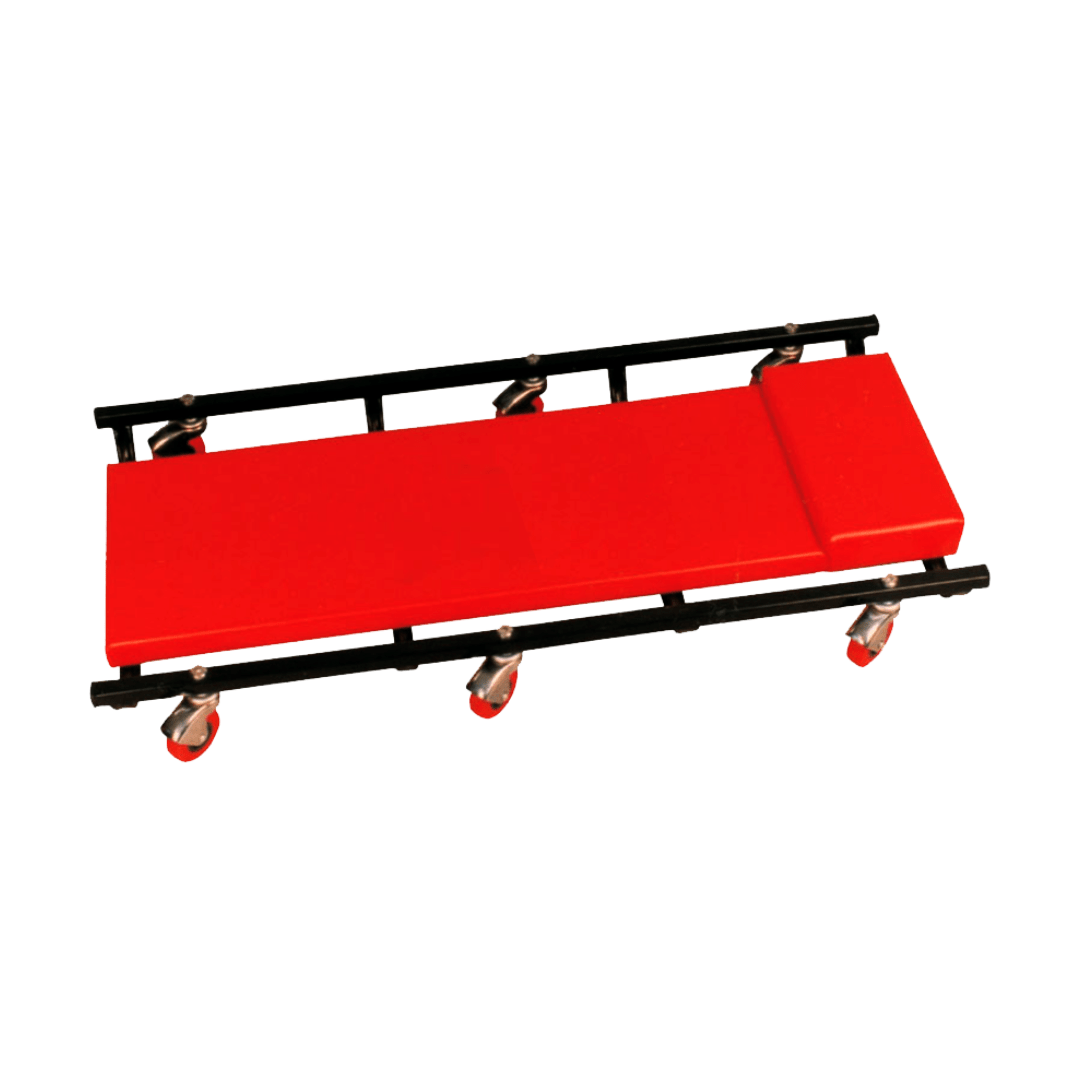 Camilla metálica para mecánico UNITED. Cómoda, resistente y práctica para trabajar debajo del vehículo con facilidad y seguridad.