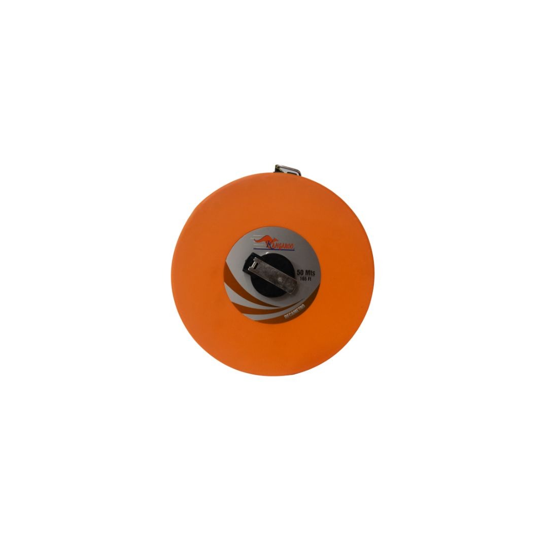 Cinta métrica Kangaroo de fibra de vidrio, flexible y resistente. Ideal para mediciones largas en obra, campo o industria.