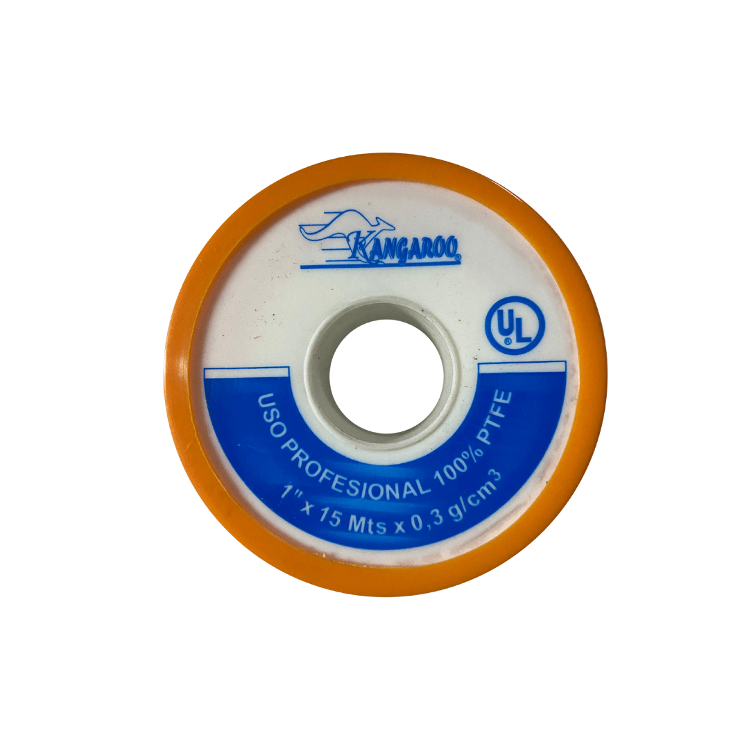 Cinta teflón Kangaroo para sellado de roscas. Evita fugas en instalaciones de agua y gas. Calidad y seguridad garantizadas.