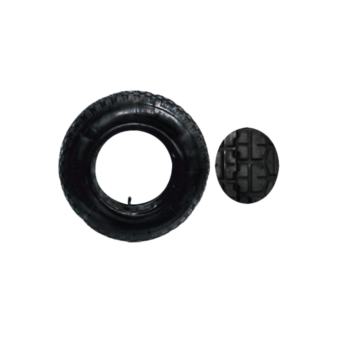 Coraza y neumático 350-8 para carretilla. 4 lonas reforzadas, mayor resistencia y estabilidad para trabajo pesado.