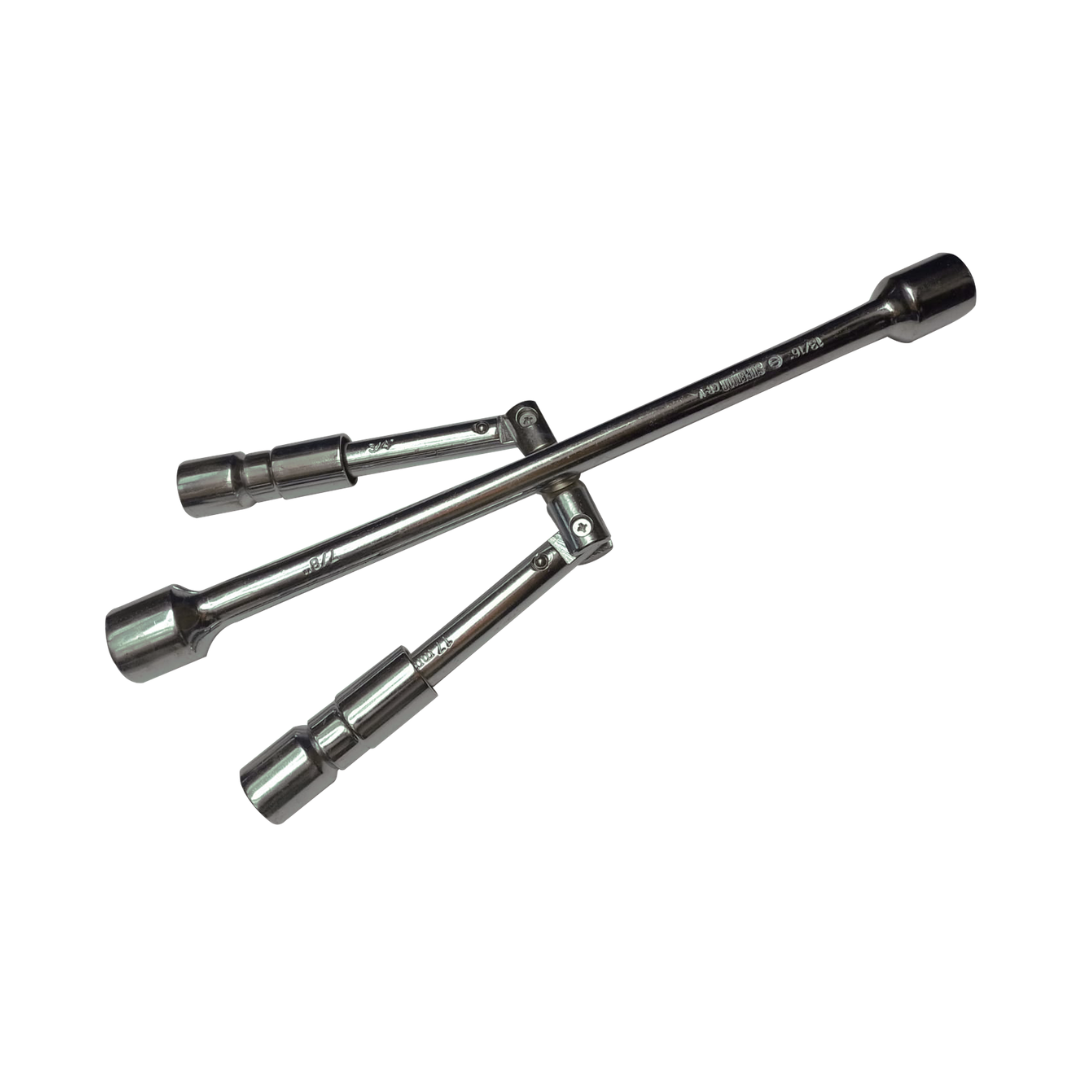 Cruceta escualizable fabricada en acero cromo vanadio (CR-VAN), diseñada para ajuste y manipulación de conexiones en trabajos de plomería y mantenimiento.