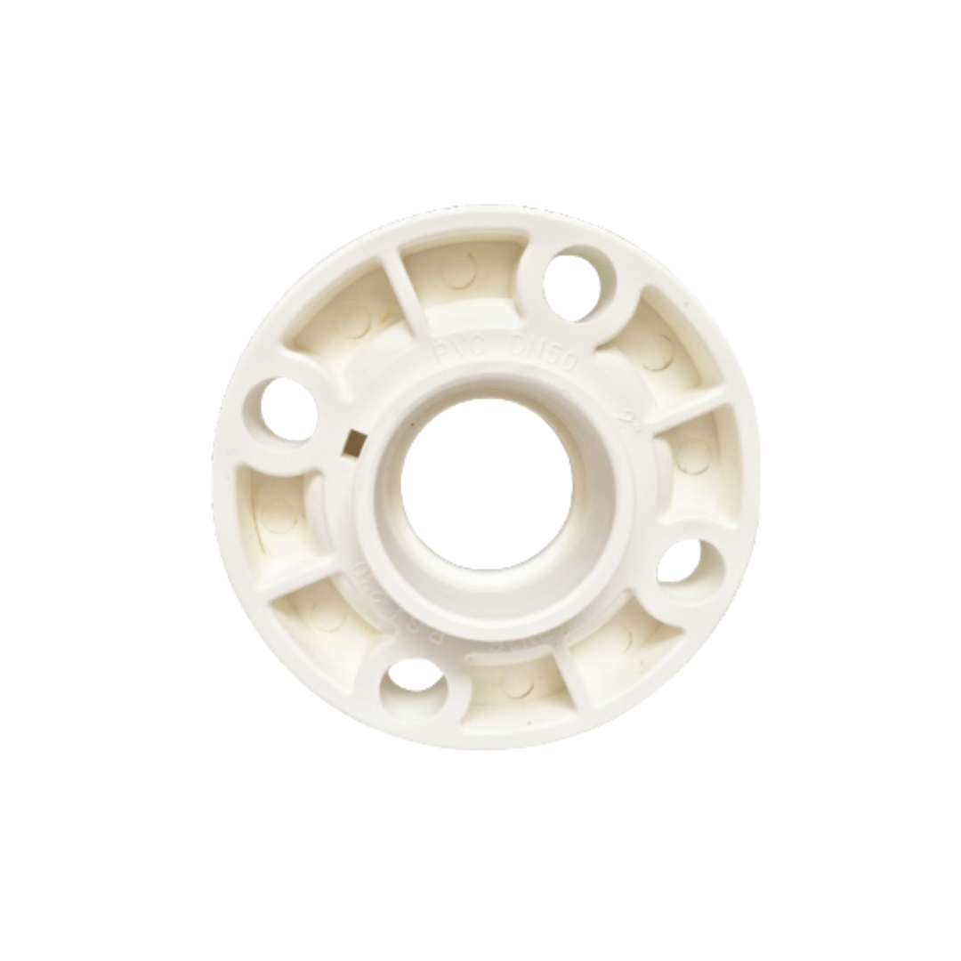 Flanche en PVC para soldar, ideal para uniones seguras en sistemas hidráulicos y de conducción de fluidos a presión.