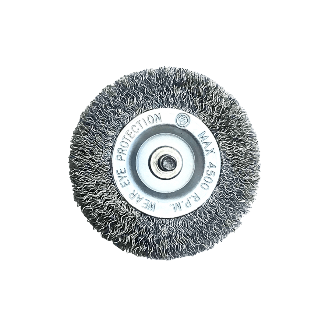 Grata circular lisa de acero inoxidable con espigo de 75mm, resistente a la corrosión y al desgaste, ideal para pulido y eliminación de óxido..
