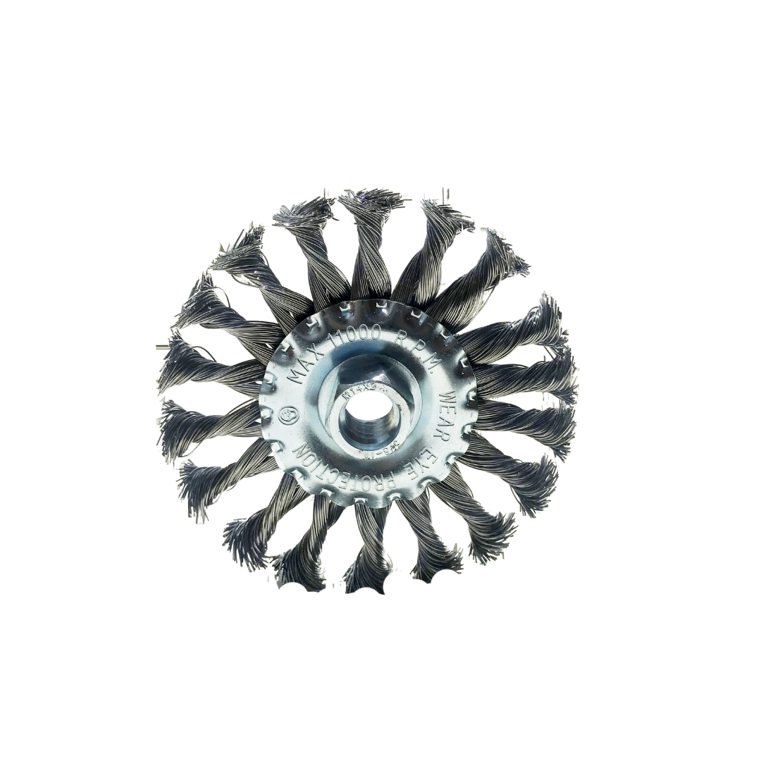 Grata Circular Trenzada de acero multirosca, ideal para la limpieza y preparación de superficies metálicas. Alta resistencia y durabilidad para trabajos industriales y de mantenimiento.