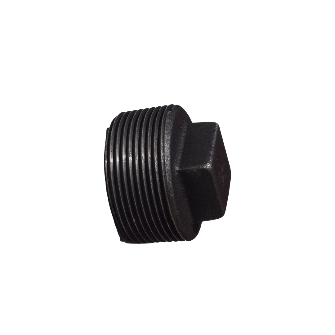 Tapón macho de acero negro. Sella conexiones en sistemas de gas, vapor y fluidos a alta presión.