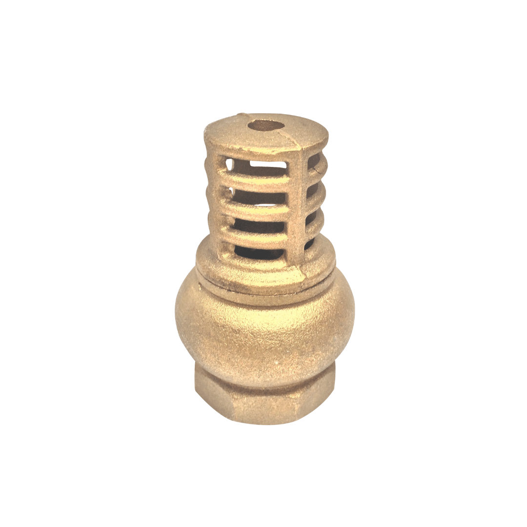 Válvula de pie con canastilla en bronce SW, ideal para succión de agua limpia, resistente y confiable para bombas hidráulicas.